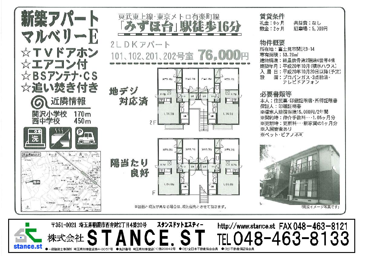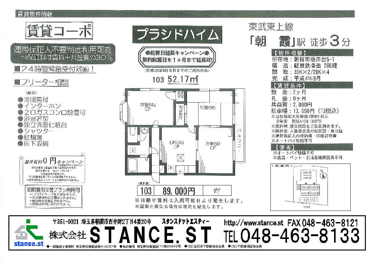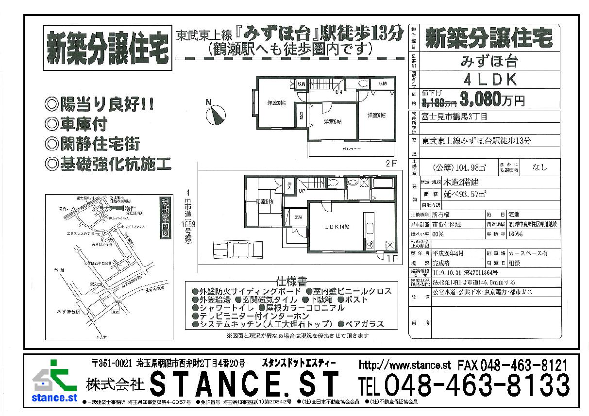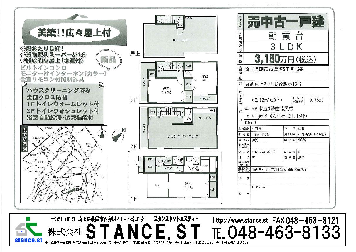 東武東上線沿線 新築・中古一戸建、マンション、売地 不動産のことなら当社にお任せ。   埼玉県朝霞市西弁財2-4-20   株式会社STANCE.ST   048-463-8133 お気軽にお問合せ下さい。