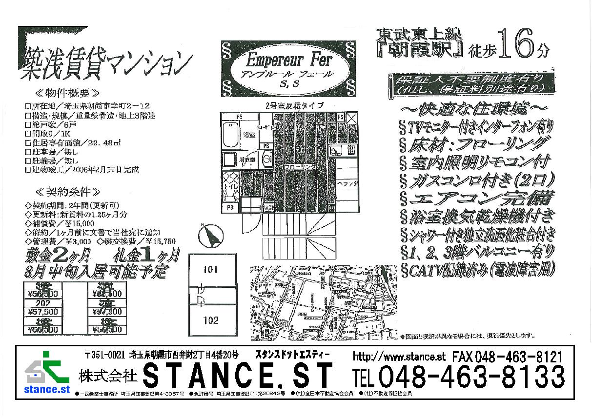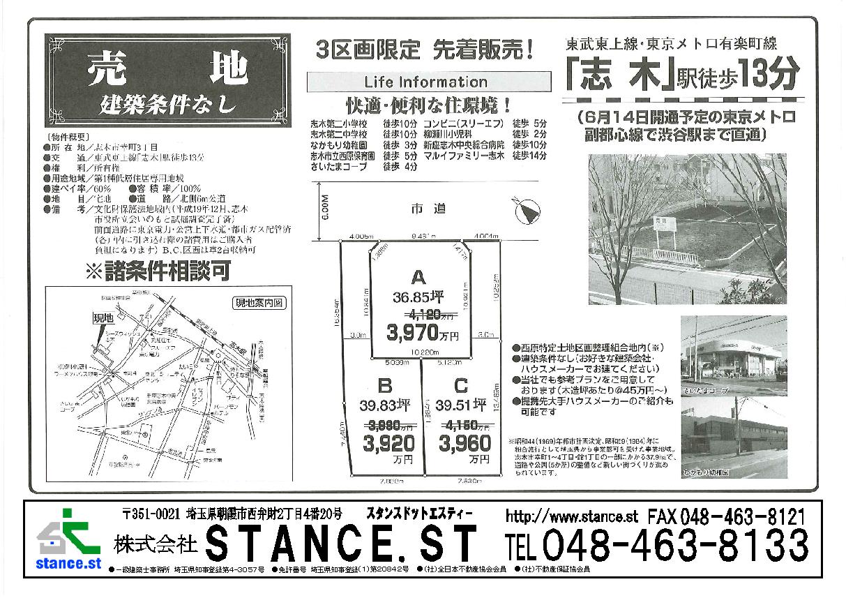 東武東上線沿線 新築・中古一戸建、マンション、売地 不動産のことなら当社にお任せ。   埼玉県朝霞市西弁財2-4-20   株式会社STANCE.ST   048-463-8133 お気軽にお問合せ下さい。